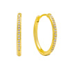 Add some sparkle to your look with our Bronx earrings! Featuring hand set clear CZ stones, these pave hoop earrings are the perfect accessory for any occasion. Elevate your style and catch everyone's eye with these dazzling earrings.